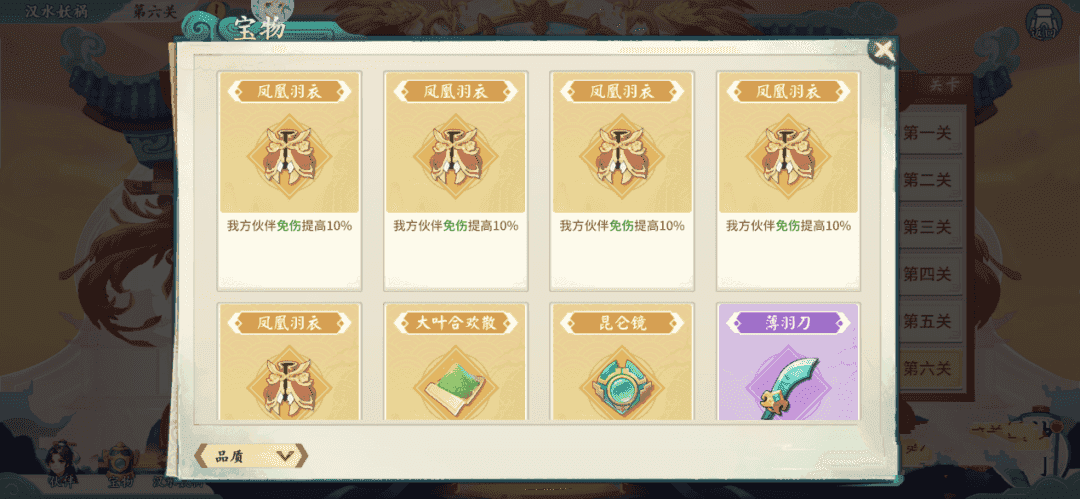 对于卡关的朋友,强烈建议大家第一层刷出来一个昆仑镜,后面都选免伤神器,这样可以实行我们的反伤战术。